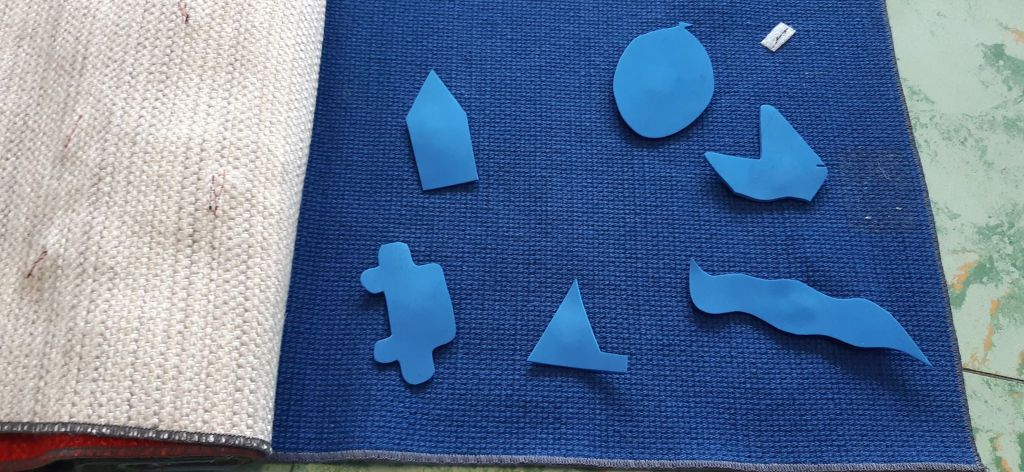 Knip platte gekleurde vormen uit en voorzie zeker een te verstoppen/te zoeken figuurtje. Dit figuurtje kan ook een foto van de kleuter, de mama/papa zijn. Kleef velcro in het ‘boek’ en op de keerzijde van de figuurtjes.
