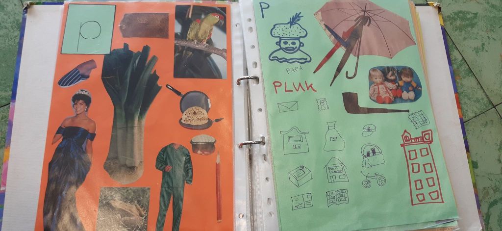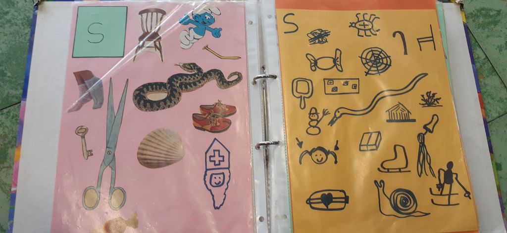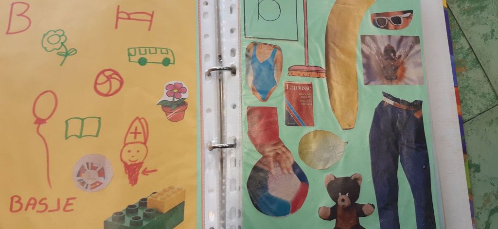 Dit is een ouderwetse map met plastiek mapjes erin. Per letter van het alfabet zijn er een aantal bladen die jaarlijks aangevuld worden met wat de kinderen meebrengen en benoemen. Iedere week of per thema kan een letter in de belangstelling staan en wordt er rond de map verzameld.