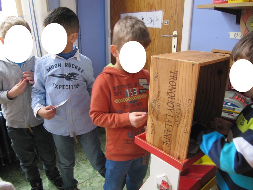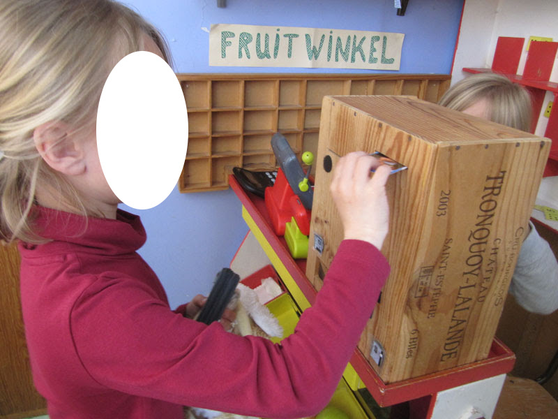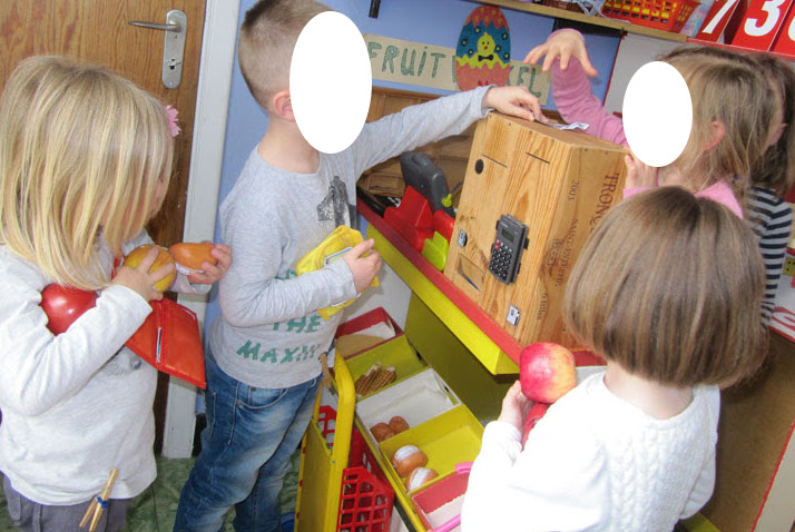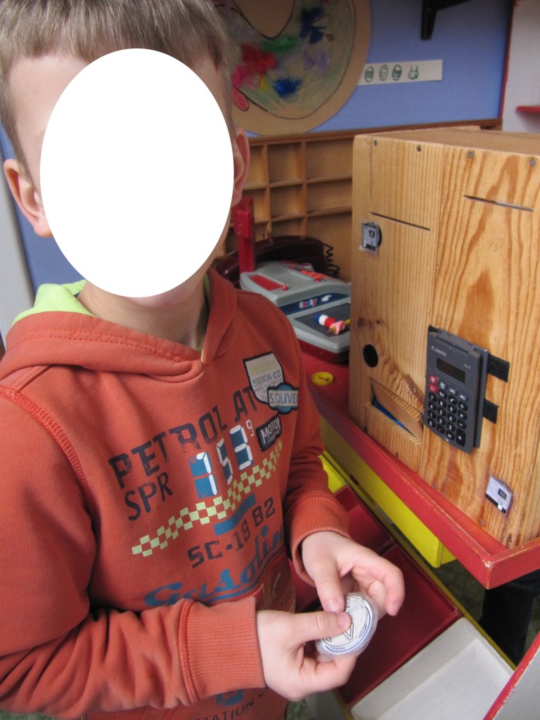 Ieder jaar start ik in de klas met een winkel waar, door gebrek aan speelgeld, alles gratis is. Zo komen de kinderen al snel tot de vaststelling dat er iets ontbreekt, dat de anderen zomaar alles ‘stelen’, dat de winkelinhoud helemaal in de huishoek ligt, dat iemand van een ander hoekje zomaar achter ‘de kassa’ staat, …