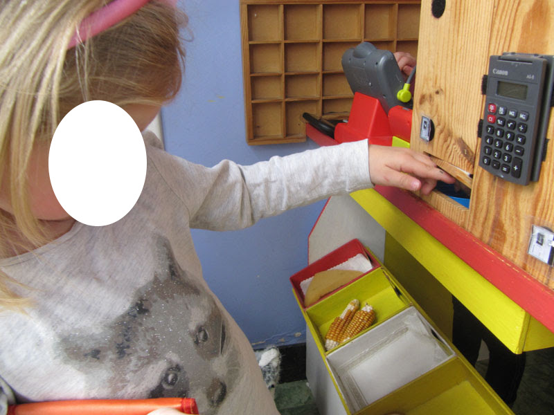 De aanvullingen: geld, tassen, geldbeugels, mandjes, papier/potlood, prijskaartjes, … zorgen voor en gezellige winkeldrukte. Meestal wordt dit na enkele dagen gevolgd door de vaststelling dat het ‘geld’ zoek is.