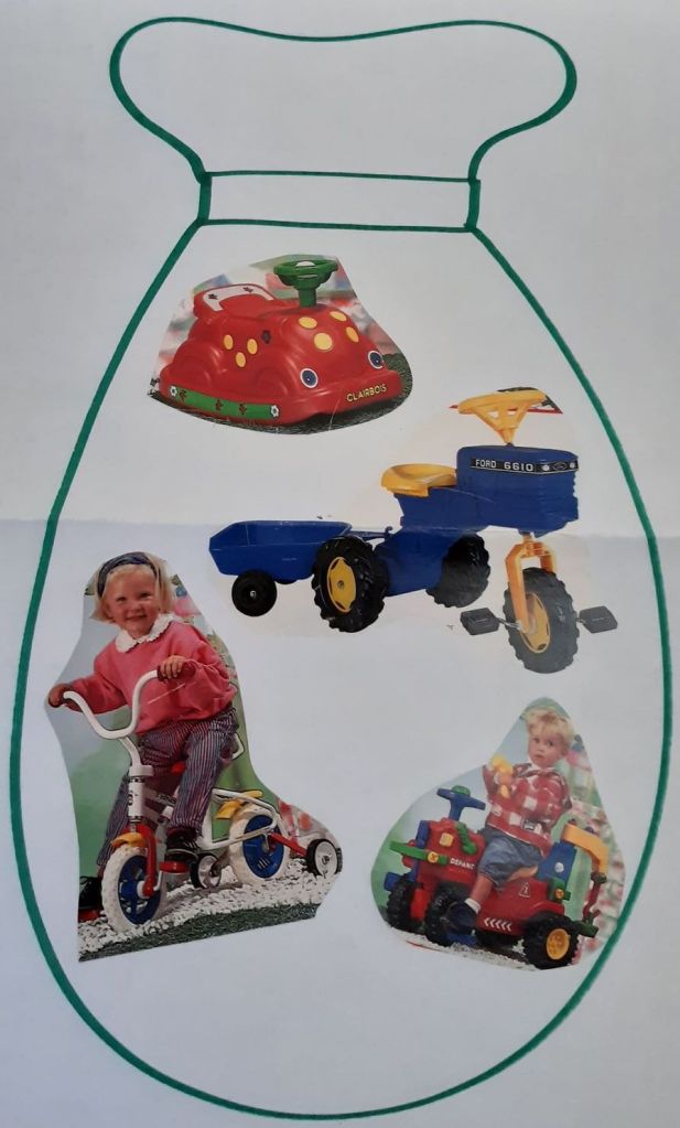 – OF: Ze mogen vertellen in welke zak zij zouden willen zitten … m.a.w. welke soort speelgoed ze zouden willen zijn en waarom (Wat kan je dan doen als je een auto/pop/steekpareltje/kleiklompje bent?).