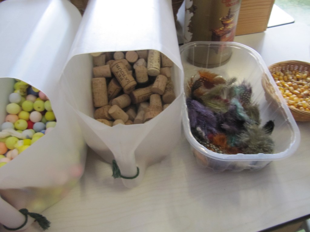 - Lijm, stiften, stukken laken, bakjes, keukenrollen, …