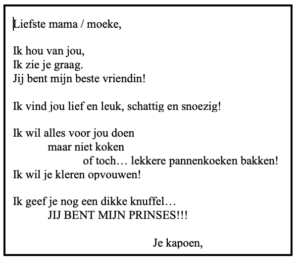 - Creatief met taal: Een versje ‘uitvinden’ voor onze mama!