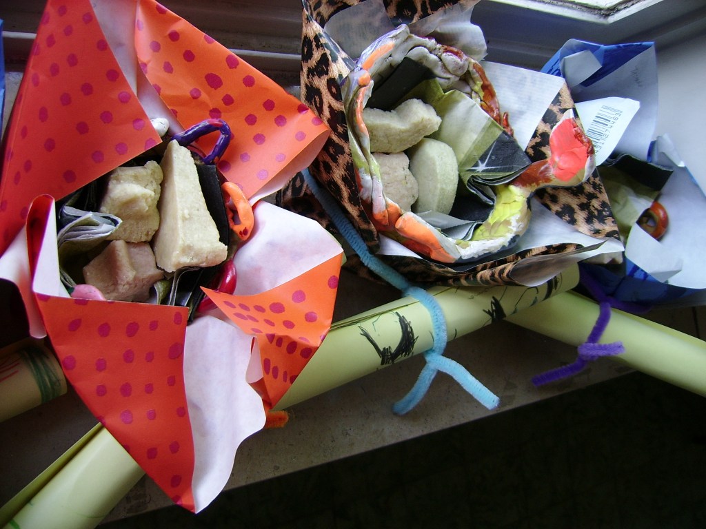 En dan brengen we allemaal een zakje mee zodat we ons pakje helemaal geheim kunnen houden.