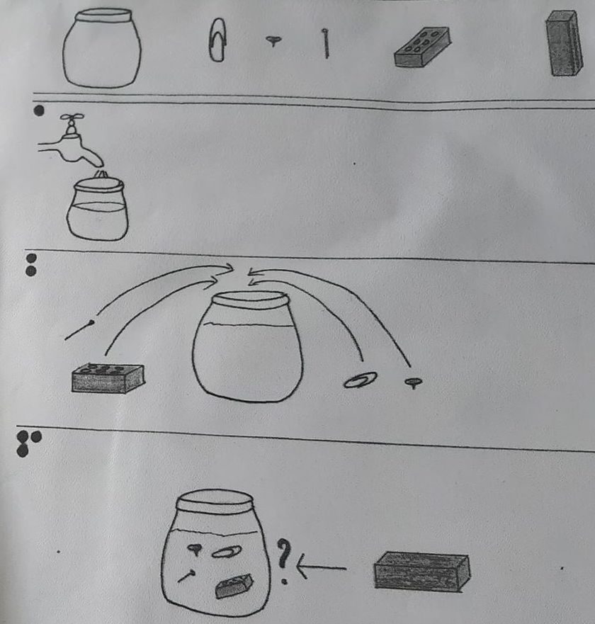 – Geef iedere kleuter 1 voorwerp uit de doos en laat ze telkens per 2 uitzoeken of hun voorwerpen reactie uitlokken met elkaar.